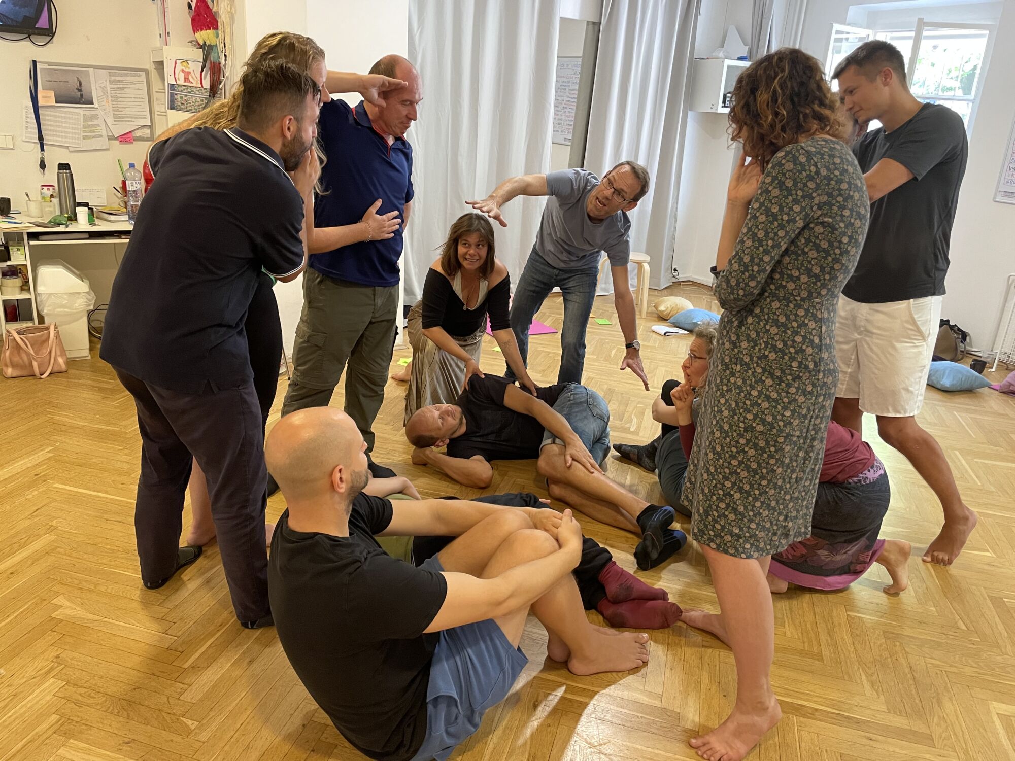 - Co je cílem výcviku?Vytvořit společně bezpečný prostor zpracovat témata, se kterými účastníci přichází, a zaměřit se na jejich individuální rozvojové zakázky. Budeme rozvíjet improvizační nastavení mysli, posílit spontaneitu, opravdovost, hravost, lehkost v životě. Budeme propojovat myšlení, cítění, vnímání, pracovat s tělem, hlasem, myslí, vědomím i nevědomím. Budeme objevovat schopnost dostávat se do flow a v něm tvořit, napojovat se na tady a teď, říkat ano tomu, co je přítomné. Rozvinout kreativitu a dovednost nacházet a využívat své zdroje. Využívat moudrost těla a jeho tvořivý potenciál. Objevovat nádheru, sílu hlasu a hlasového projevu, propojení s hudbou a prostorem.
